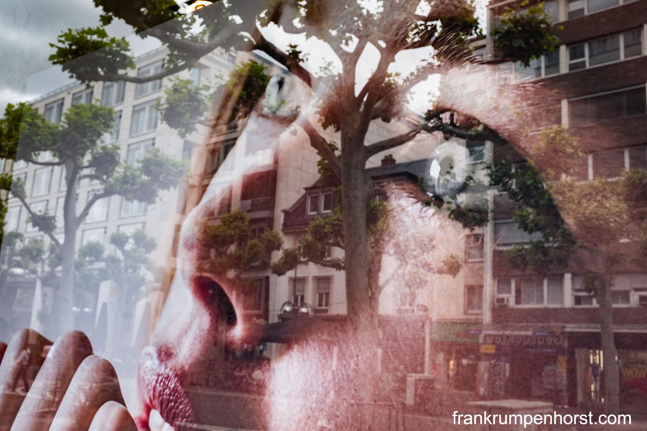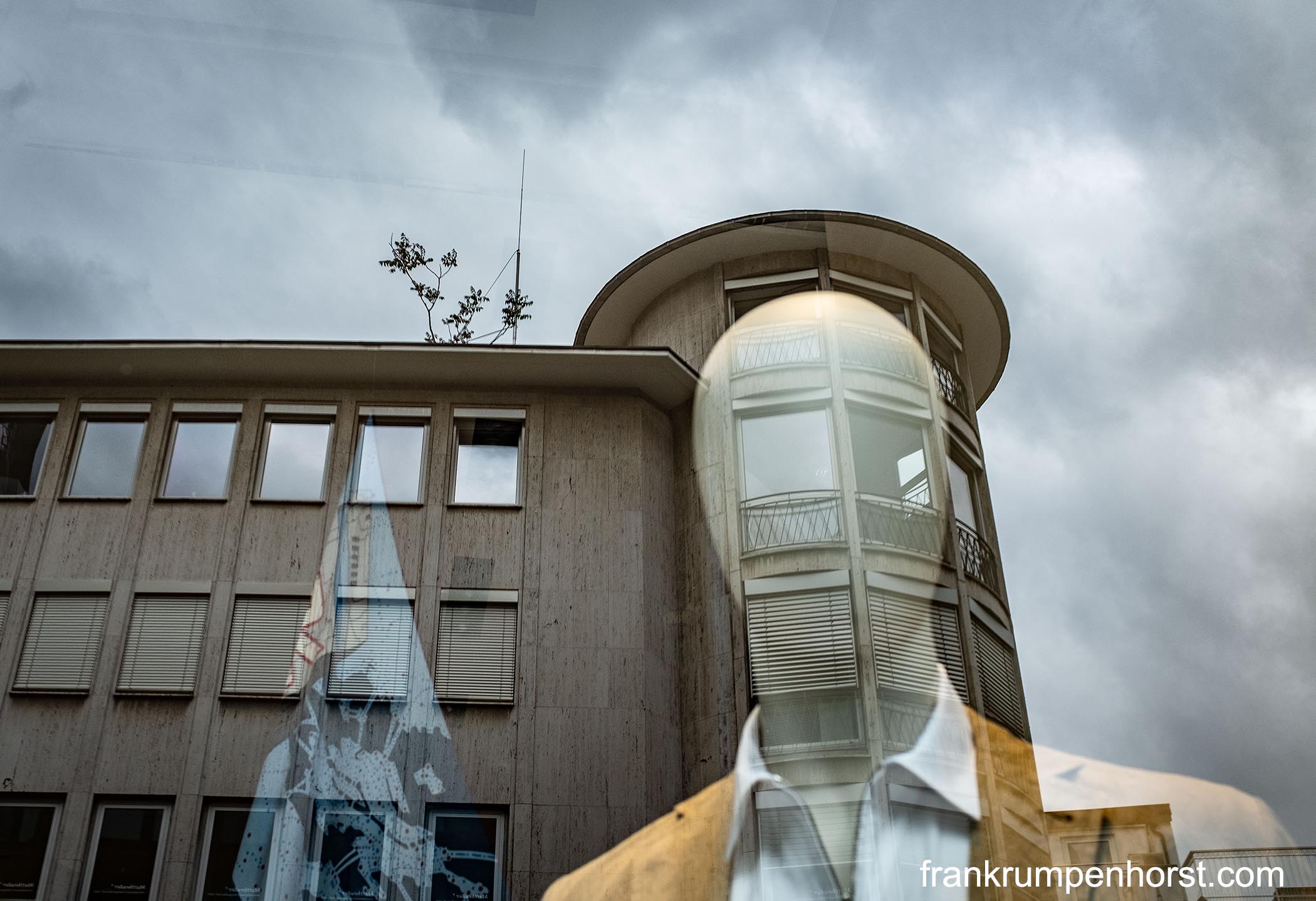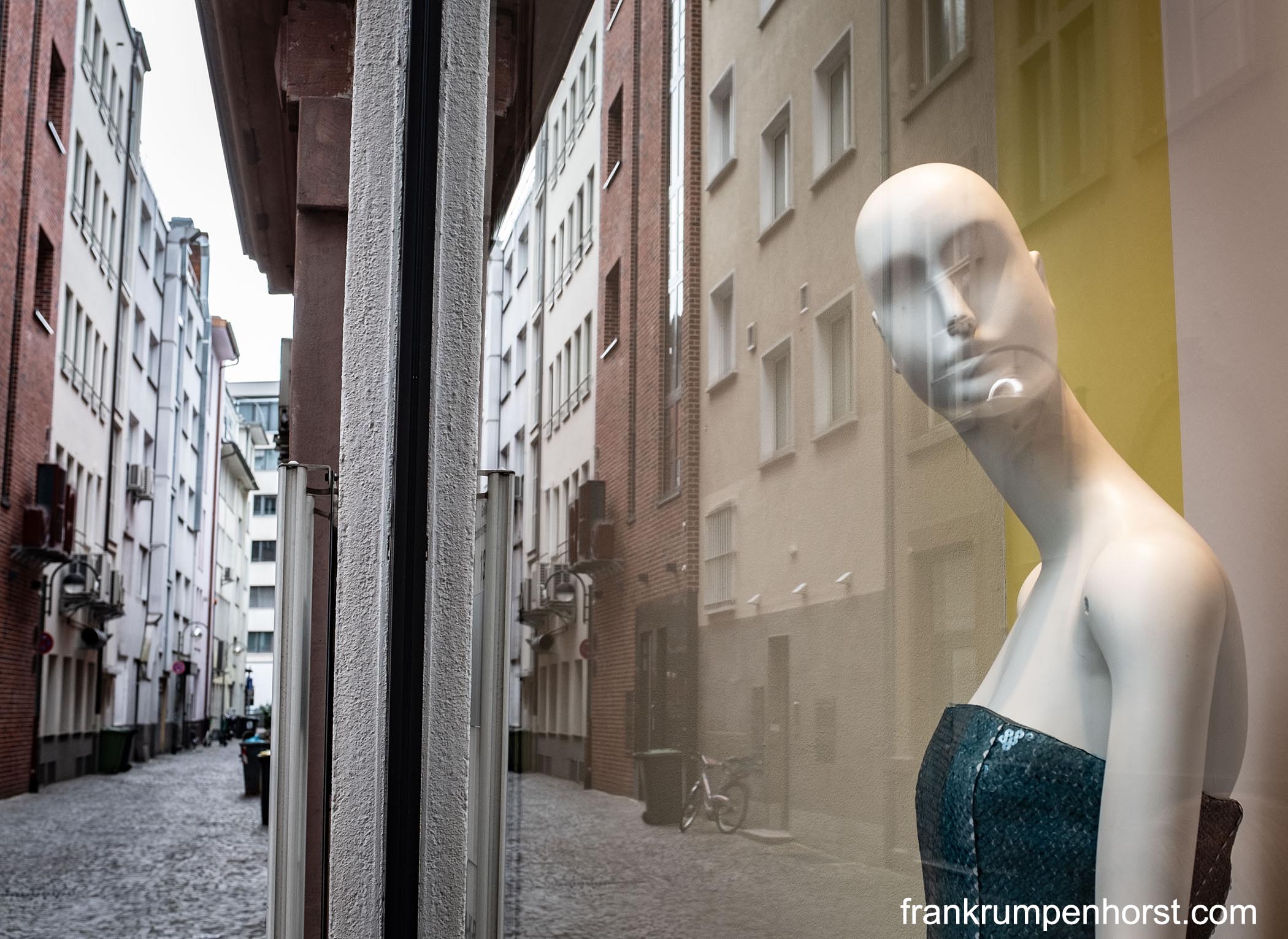 Reflections in shop windows, downtown Frankfurt in May 2020.