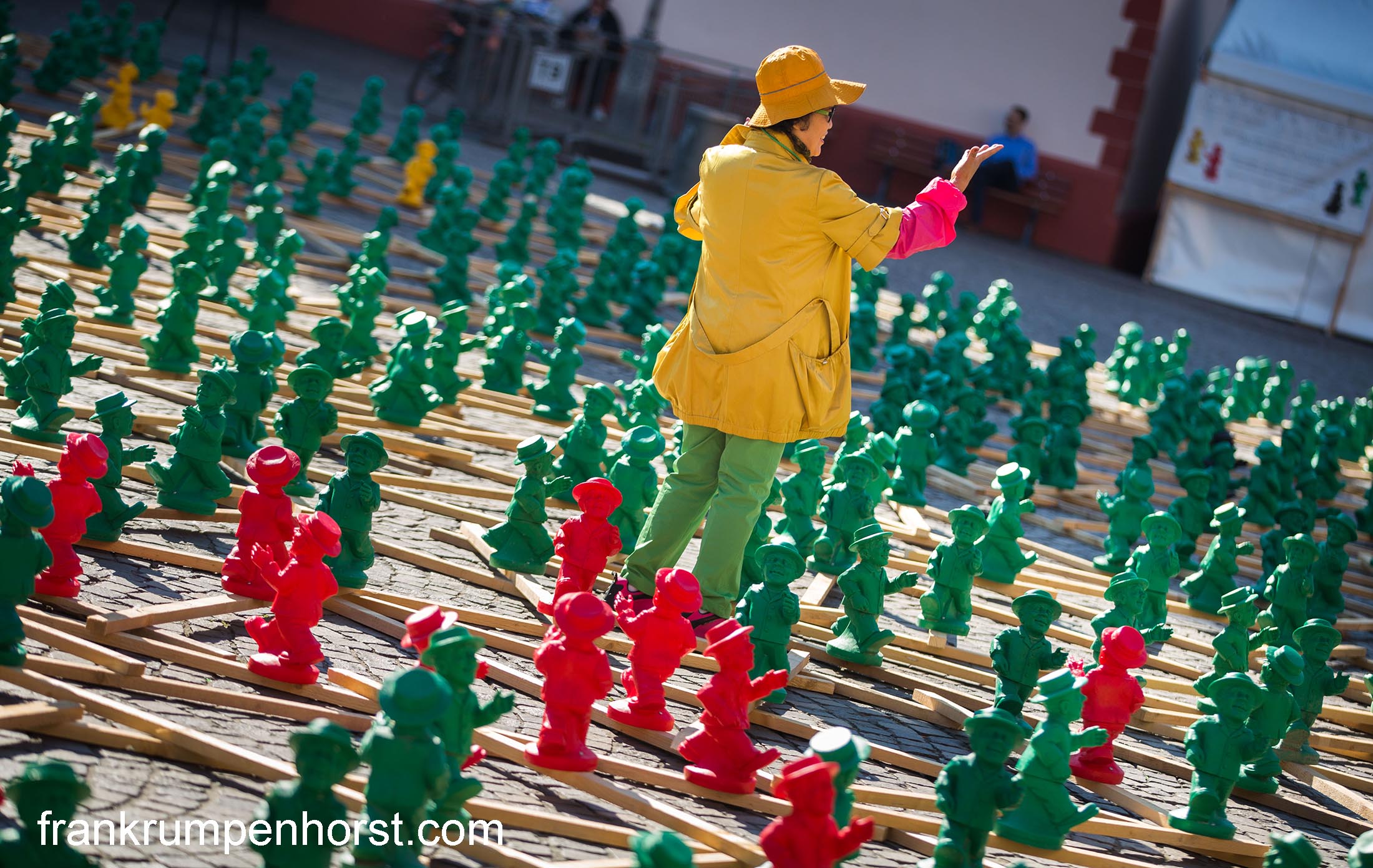 A tourist from Beijing poses for a photo among little ‘Einheitsmännchen’ (roughly translating into ‘German Unity figures’), created by concept artist Ottmar Hörl and inspired by the symbol shown on pedestrian signals in former East Germany. More than 1,000 little green, black, red and yellow plastic figures will be on display until 27 September as the city prepares for the national celebration of the 25th anniversary of Germany’s unification.