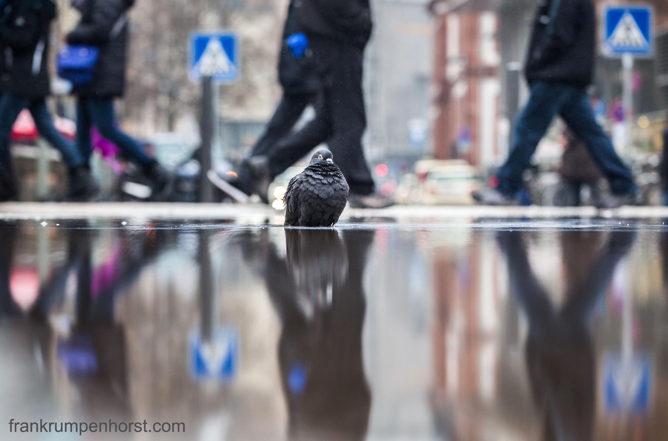 A pidgeon in a puddle