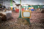 An old tv set at an urban gardening project on wasteland in the former port area in Offenbach, Frankfurt’s neighboring city, May 18.