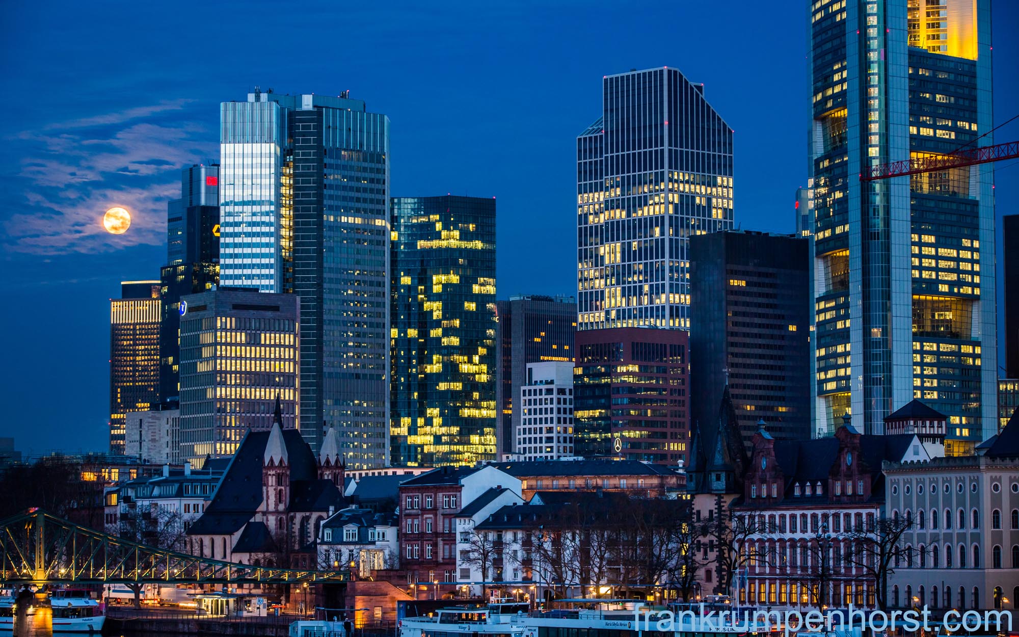 The full moon behind a carousel at Frankfurt’s bi-annual Dippemess funfair, April 13.